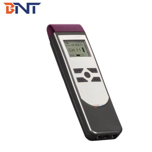 | 4-channel simultaneous interpretation receiving unit | BNT220D | Unit | ● lightweight receiver, combined with headphones, makes users feel comfortable ● press formula to select letter, 4/6/8/10/12 channels do not interfere eachother ● LCD display channel, power, signal strength ● 28 level electronic volume adjustment ● With compression function, low noise, no broken sound, wide dynamic range. ● easy to operate and carry ● the receving unit is powered by rechargeable batteries and can work continuously for up to 30 hours, and is equipped with a charging box ● the setting data has the function of power-off saving ● it is set that the data has power-off saving function within the effective range of infrared emission, and the number of receiving units is unlimited. ● not subject to seat restricyions in the venue, free to move within the range of signal transmission |